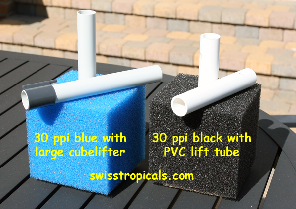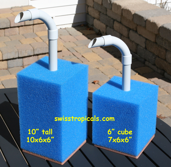 The cube filter is simple: a 4x4x4" (top) or 5x5x5" (bottom) cube of Poret® on heavy tile used as a base.